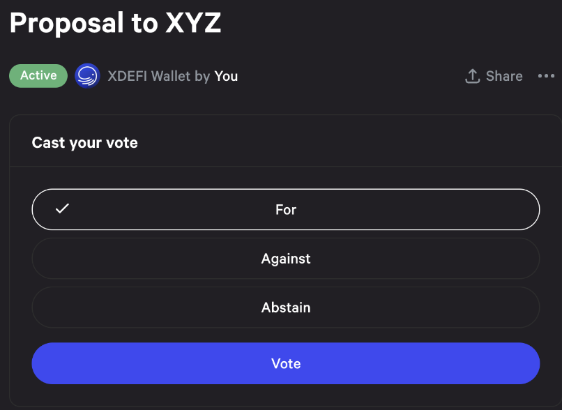 - $XDEFI token holders are able to vote on Proposals that are created by the XDEFI Community on the XDEFI Wallet Governance Portal.