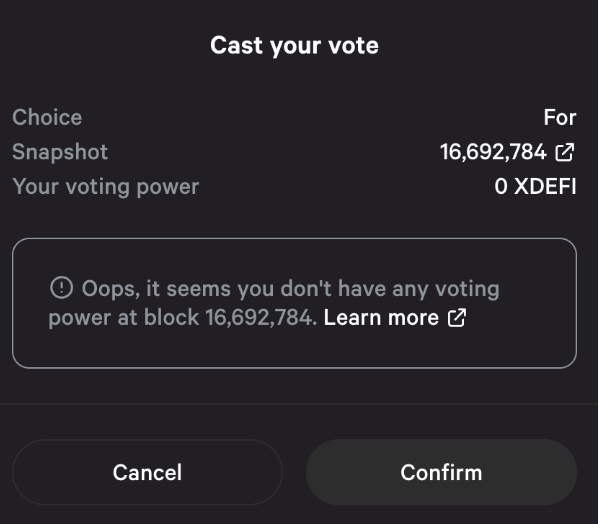 - However, transferring your $XDEFI tokens out of your wallet before the end of the voting period will affect your voting power.