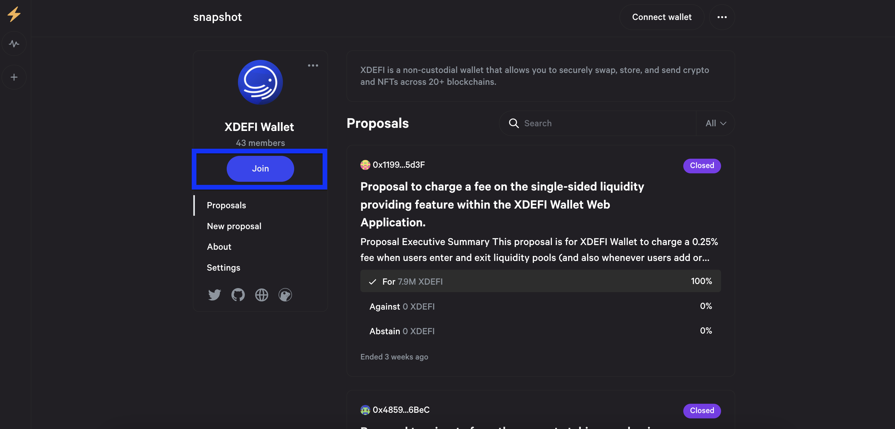 2. Join the XDEFI Wallet Governance Portal on Snapshot – please click on the blue “Join” button.