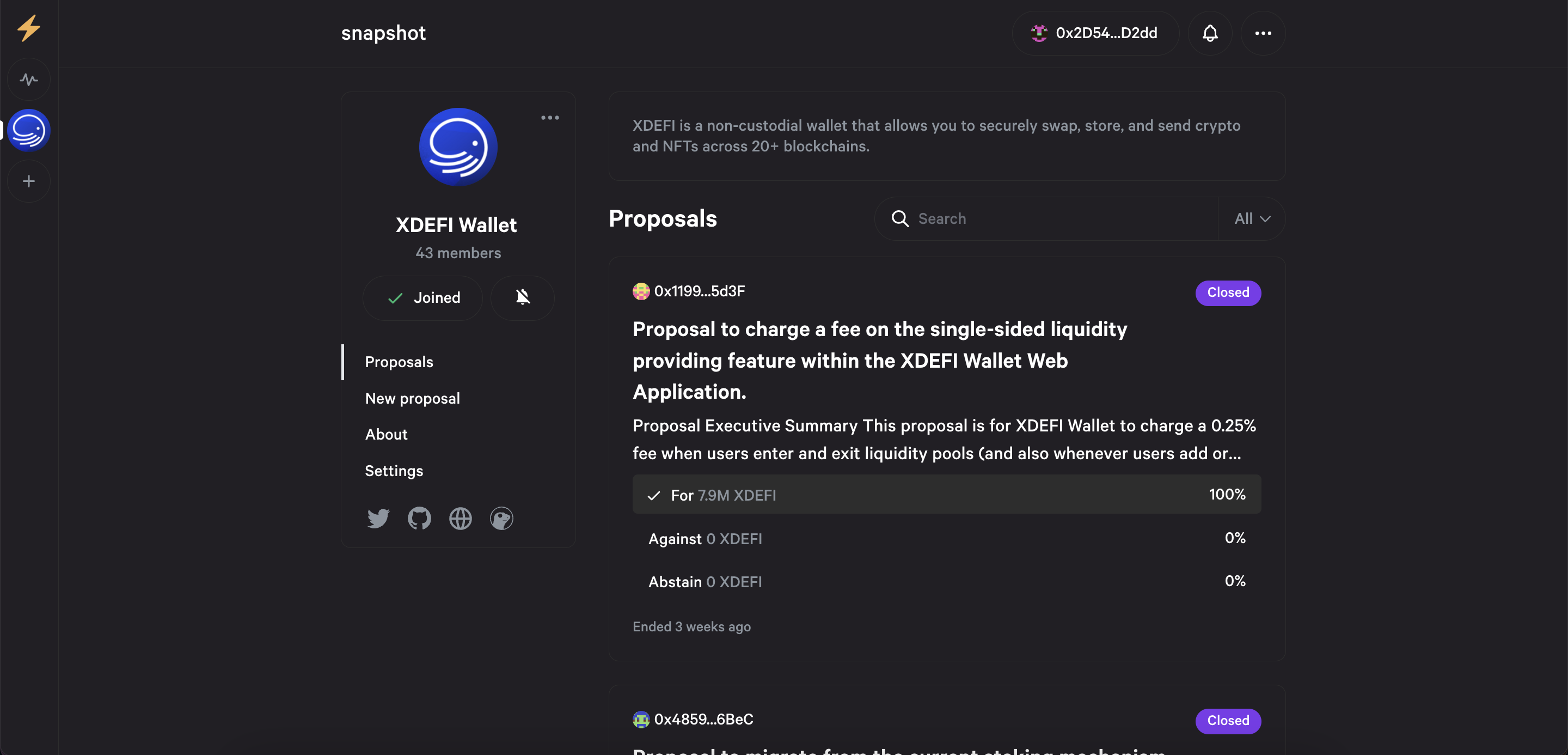 - The “XDEFI Wallet Governance Platform” is available on snapshot at the following URL: https://snapshot.org/#/xdefigovernance.eth