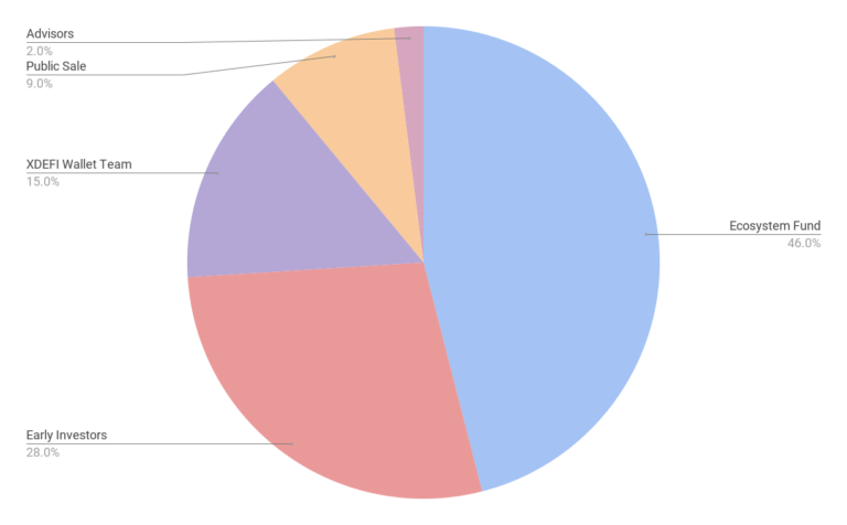 These tokens go to XDEFI’s early investors who funded the initial development of XDEFI Wallet. The investments took place over two private funding rounds in 2021 and 2022, and these tokens are subject to a 3-year schedule. - 15% to the XDEFI team
