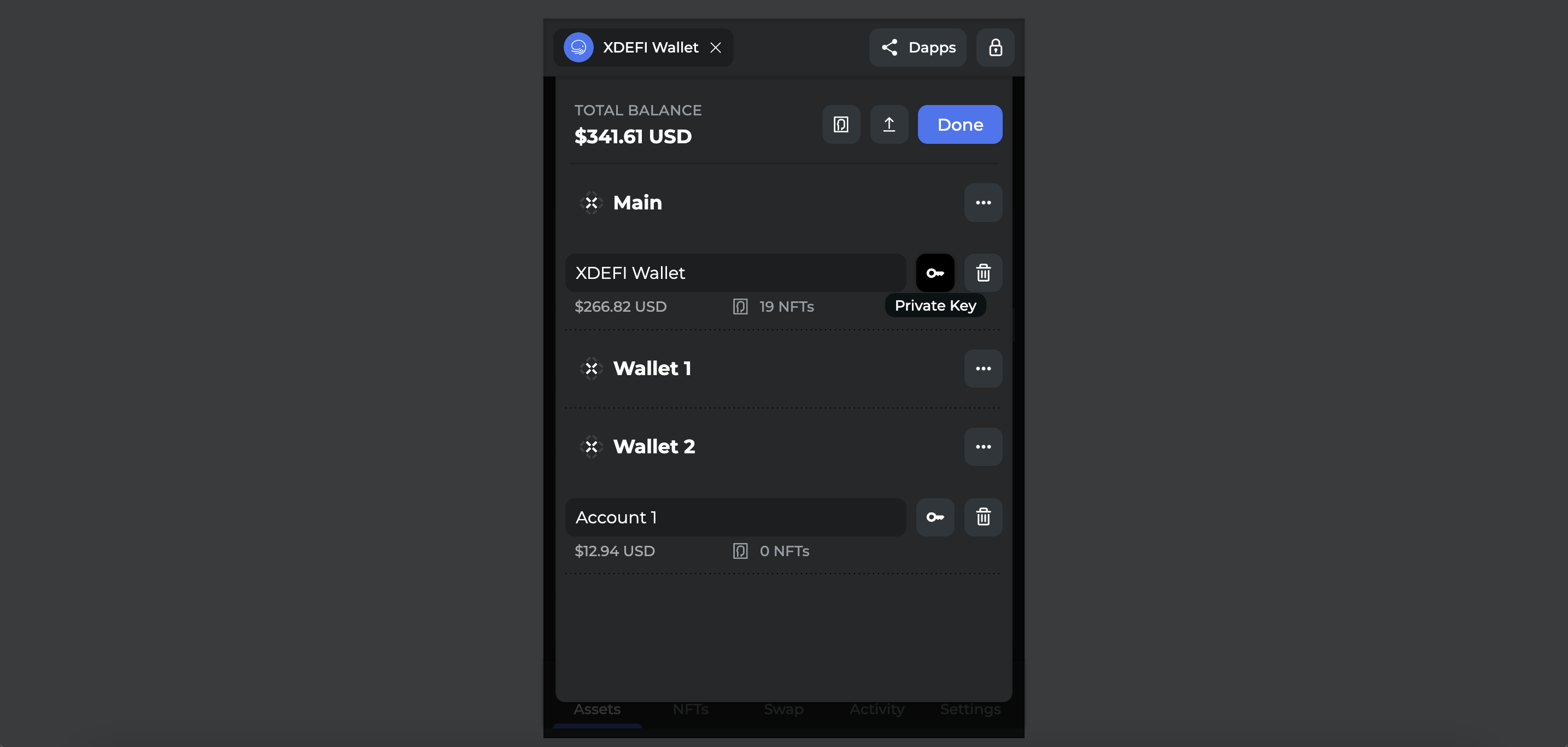 2. From the XDEFI Wallet Home screen, click on the upper-left button related to the current account selected