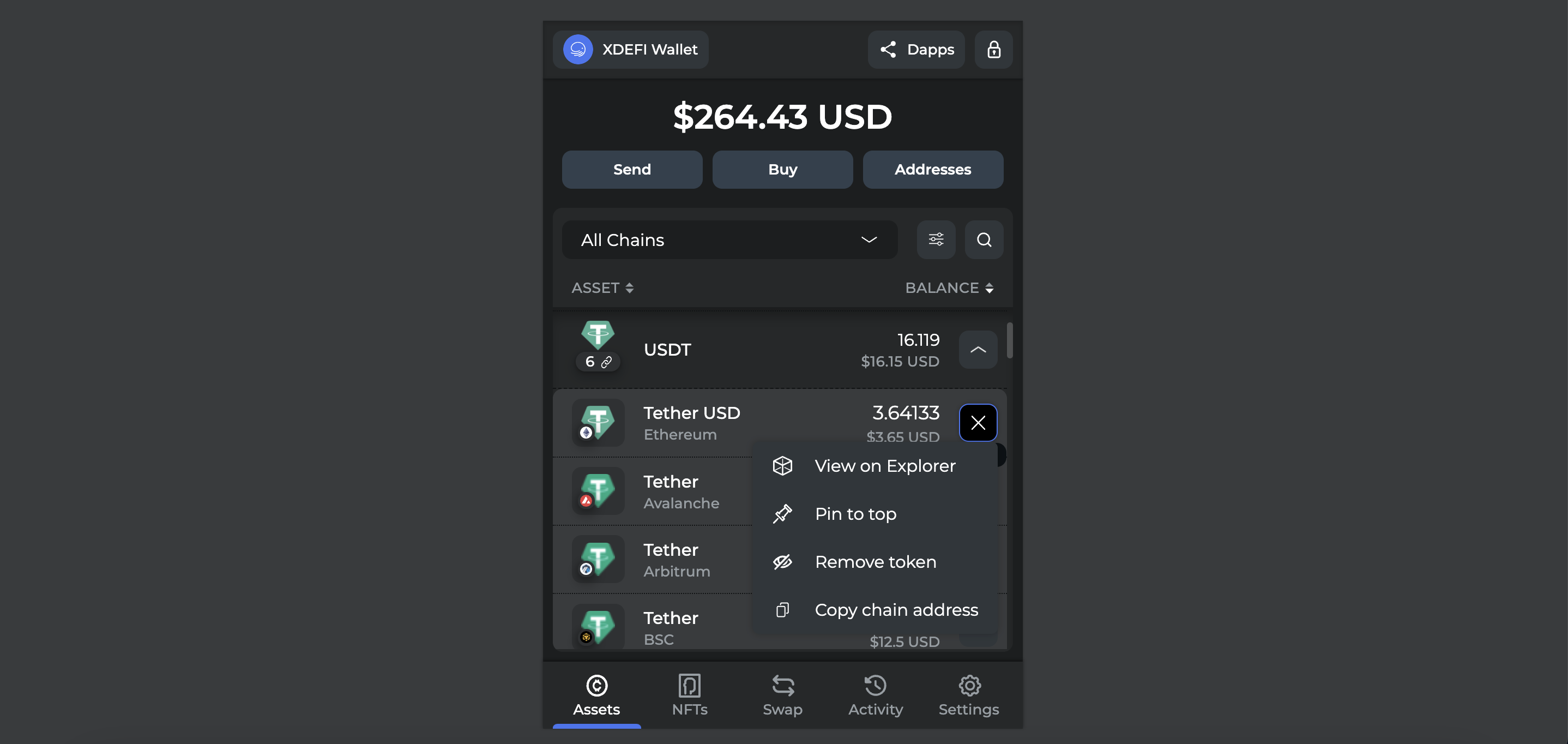 1. In your XDEFI Wallet home screen, click on the ‘…’ associated with the token