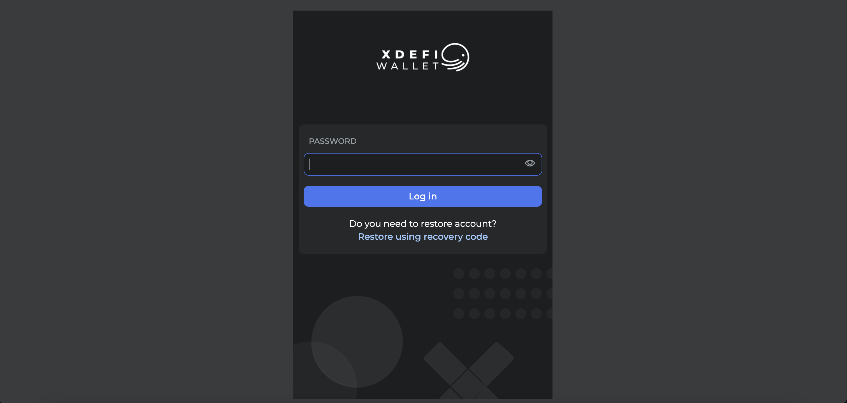 - To restore your password, please enter your XDEFI Wallet recovery code (or phrase).