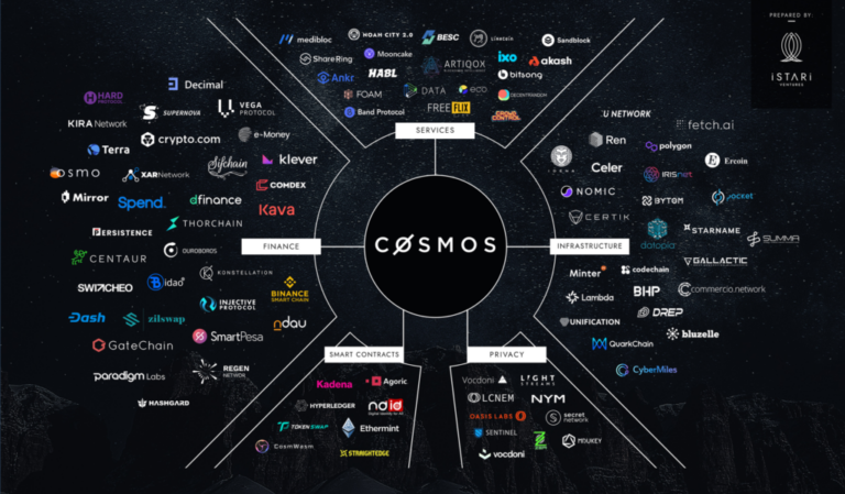 The Cosmos ecosystem is a significant competitor to the Ethereum network. Ethereum is an all-purpose blockchain supporting many use cases, unlike the Cosmos hub. This results in the fact that Ethereum lacks specialisation.