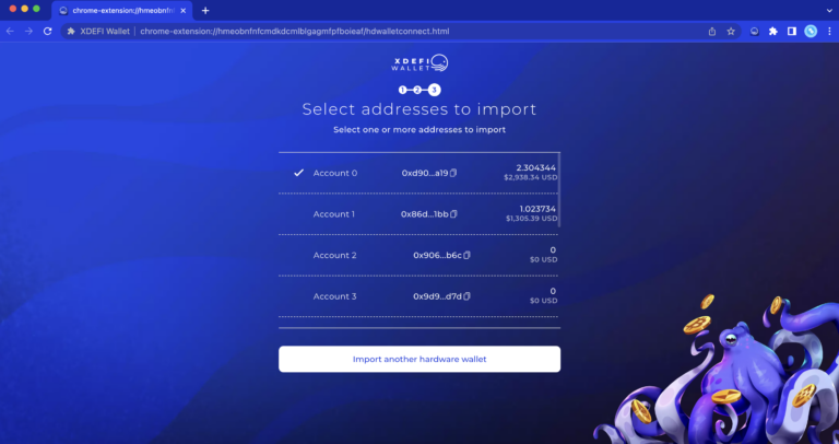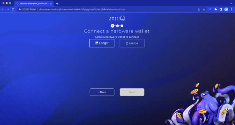 - À partir de l’onglet XDEFI Wallet ouvert dans votre navigateur, cliquez sur le bouton Ledger