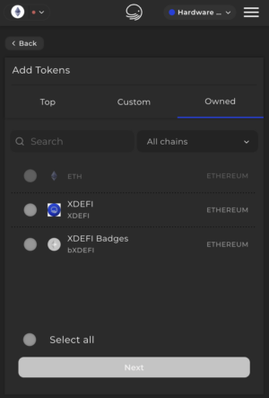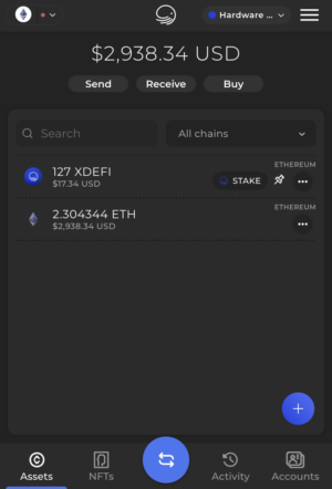 Vous êtes à présent de retour sur la page d’accueil deXDEFI Wallet avec votre compte de wallet matériel sélectionné.