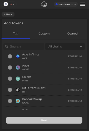 - Sélectionnez l’onglet « Top » ou l’onglet « Owned » (l’onglet Détenus affichera la totalité des jetons en votre possession).