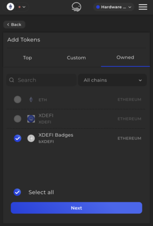 - À partir de l’onglet XDEFI Wallet, cliquez à nouveau sur le bouton Ledger