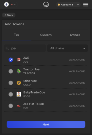 - Top : cet onglet contient la totalité des jetons et dispose d’une barre de recherche.