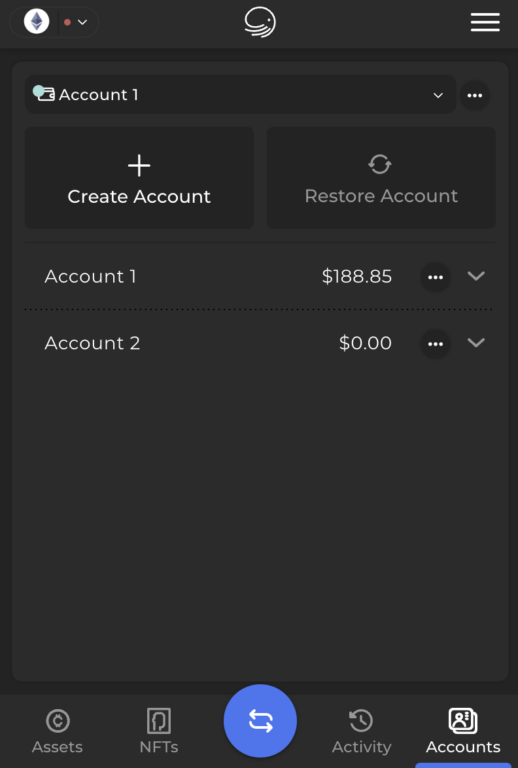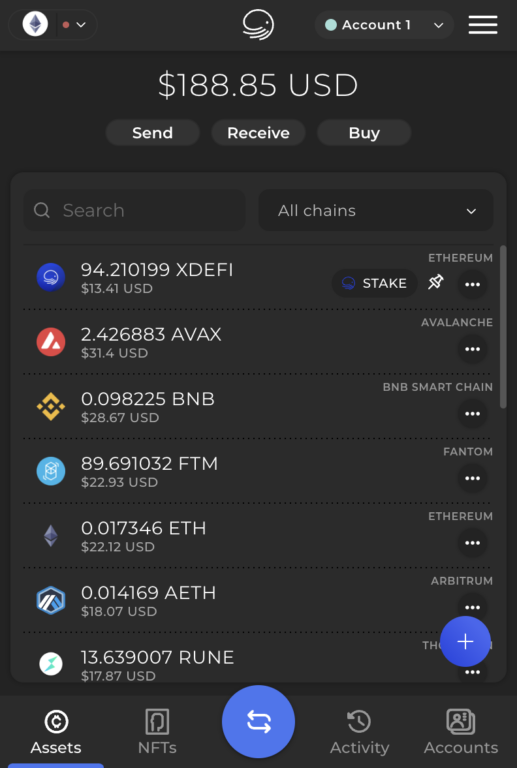 1. Na parte inferior da tela inicial do XDEFI Wallet, clique no ícone da wallet