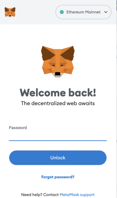 2. Desbloqueie o MetaMask com sua senha