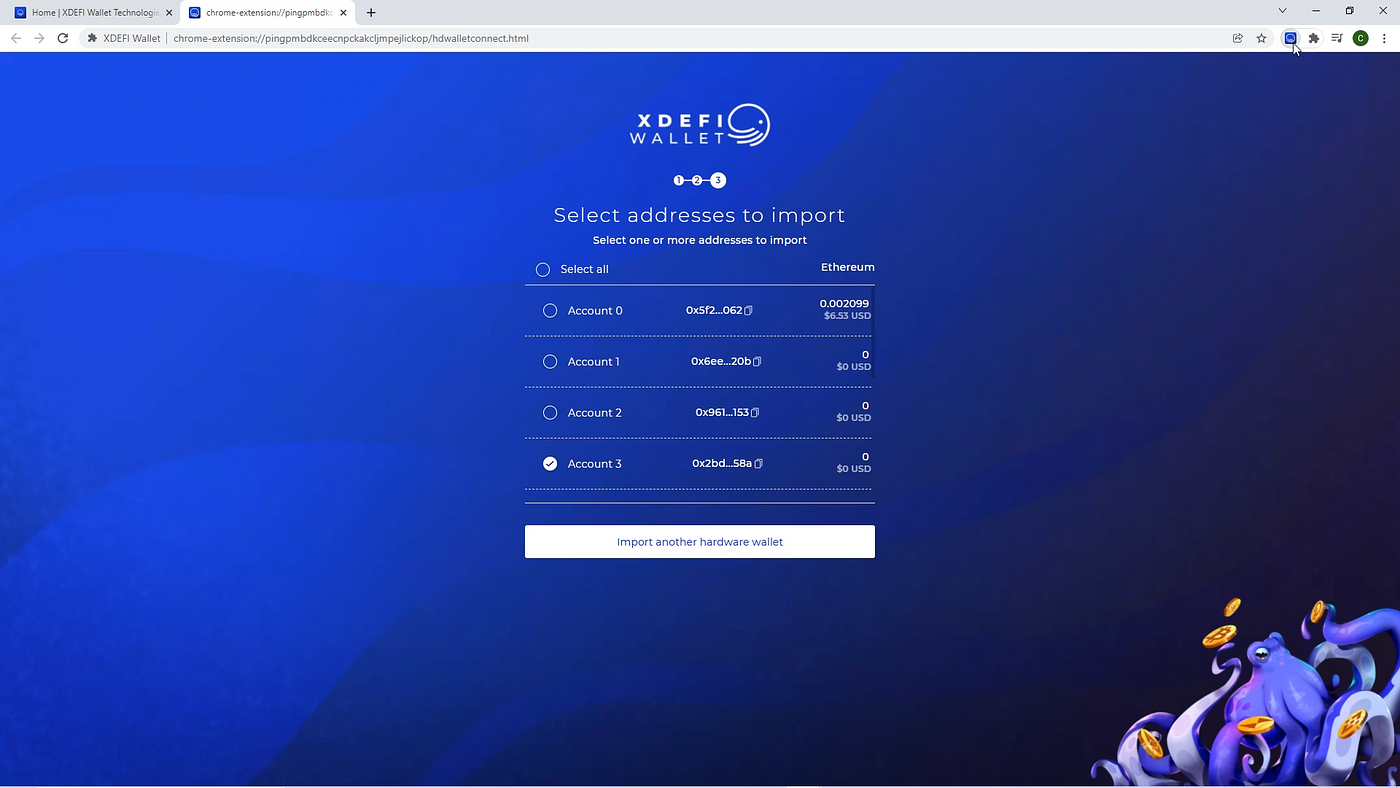 - Na aba XDEFI Wallet agora aberta em seu navegador da web, clique no botão “Ledger”
