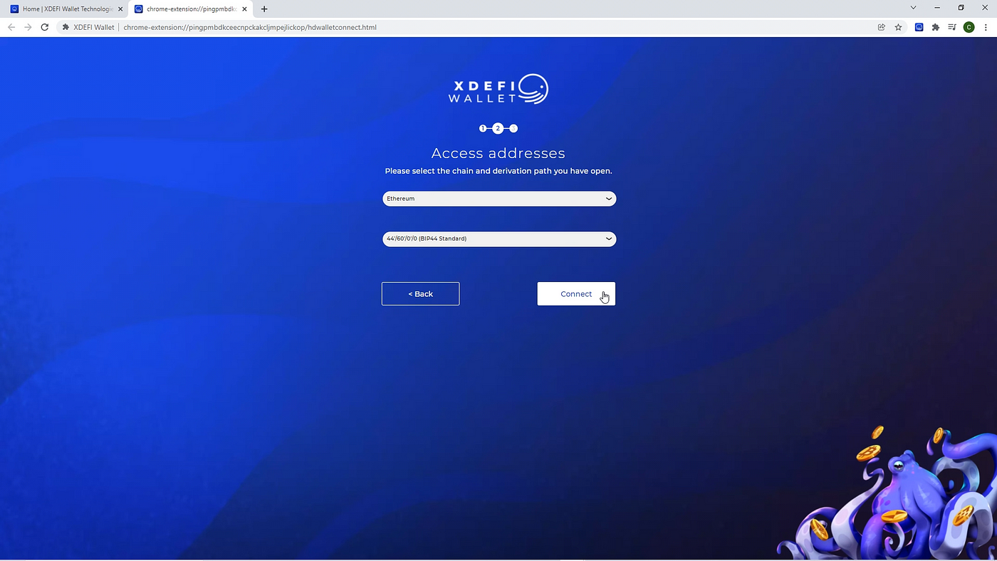- Na aba XDEFI Wallet, clique novamente no botão “Ledger”