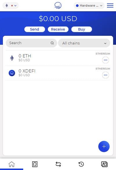 Agora você está de volta à tela inicial do XDEFI Wallet com sua conta de wallet de hardware selecionada.