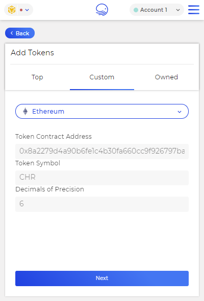 . XDEFI Cüzdan ana sayfasında belirtece ait üç noktaya tıklayın